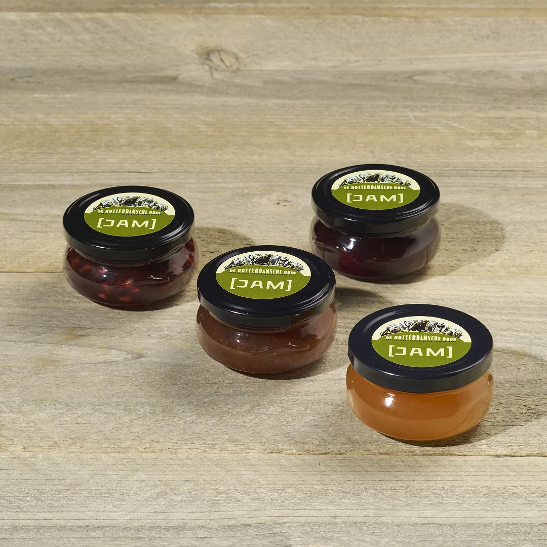 Zoet met pit, precies zoals het hoort. Elke jam brengt karakter op je kaasplank. Gemaakt voor bij De Rotterdamsche Oude, maar ook onweerstaanbaar op brood of toast. Rotterdam in een potje: vol, verrassend en gewoon lekker. Onze confitures van vers fruit zijn verkrijgbaar in vier verschillende varianten: